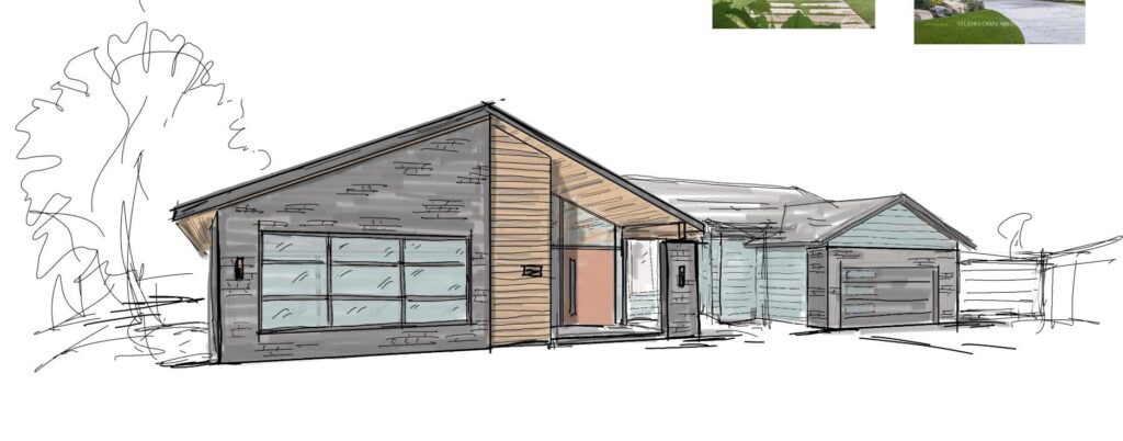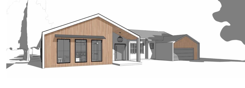 We see this often with 1940s and 50s farmhouse and ranch-style homes, where incremental changes over decades have diluted the original intent. A thoughtful façade refresh can unify the house by simplifying materials, tightening window layouts, and introducing a more deliberate entry sequence.